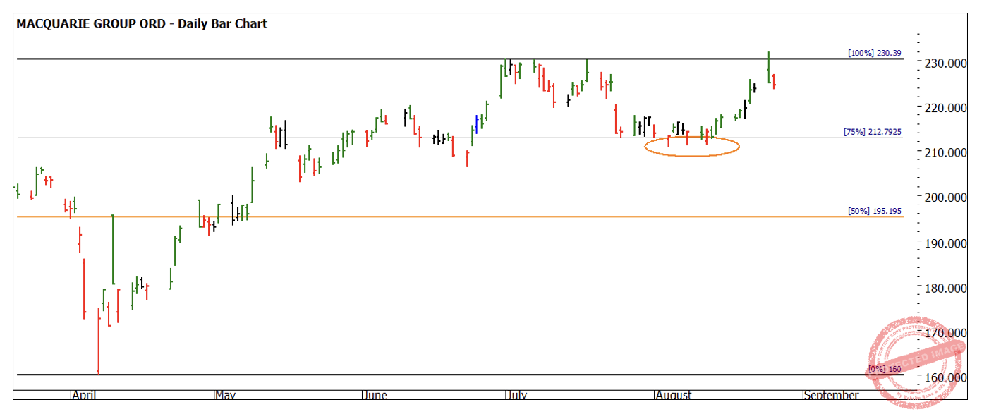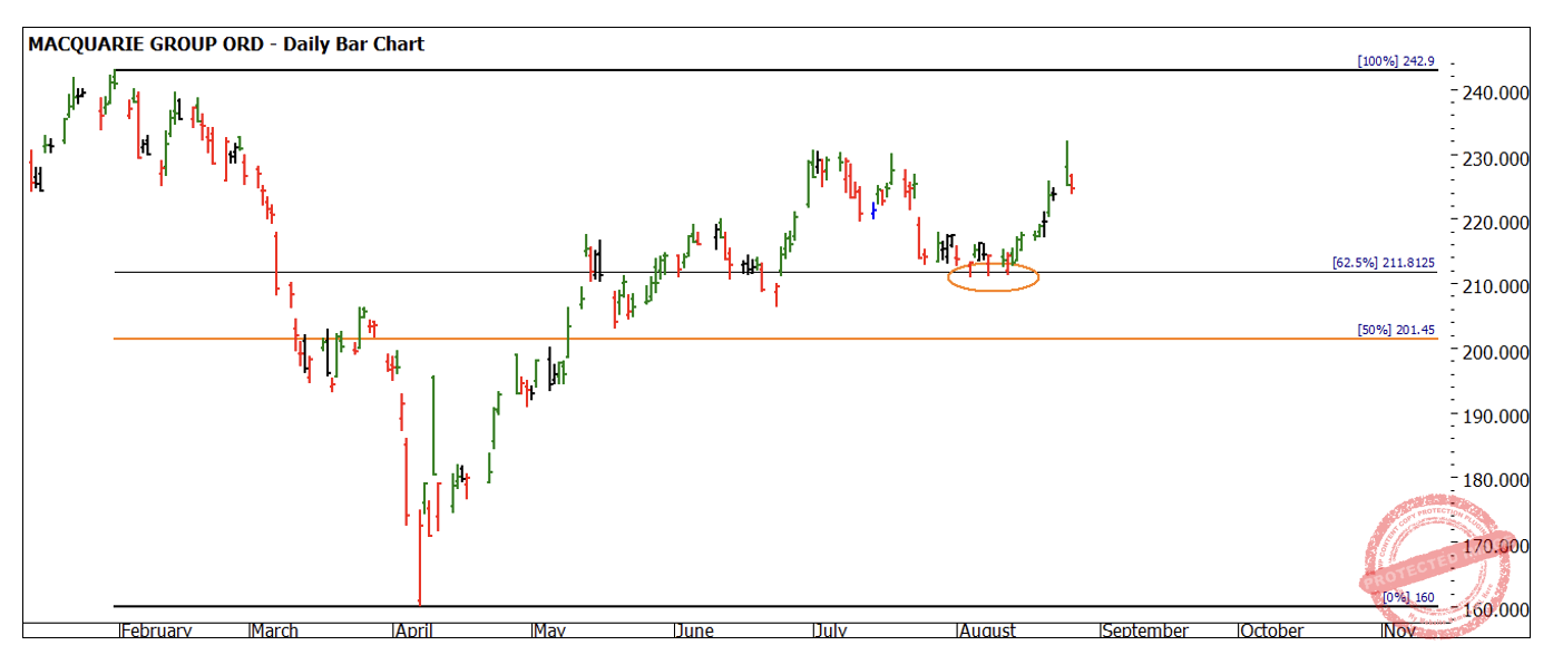The sideways or uncertain trends in many markets have been challenging in recent times, but rest assured they don’t last forever. When the clutter of the small picture impedes our view, we can step out of markets, step back and look for the big rocks. I have been working with Macquarie Group (MQG.ASX) in my last few articles and this market has produced a good run from our August seasonal time. There has been previous analysis on the power of seasonal time and Time by Degrees in this market. The lows around the 4th and 8th of August have acted as a springboard to retest the levels of approximately $230 per share that we have seen hold the market up in July.
