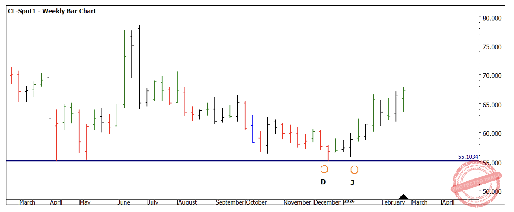 Chart 1 – Weekly Bar Chart CL-Spot1