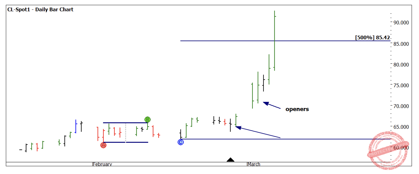 Chart 5 shows the following week which was the easiest in this recent move. An Openers Rule on the 3rd March was the next most logical entry signal.