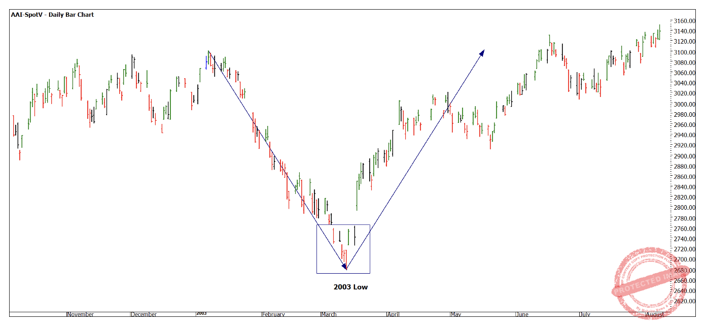 This pattern takes me back to 2003, yes, I have been around that long. I recall we watched a similar scenario play out in March of that year and it was a strong signal that the bear market was over. These patterns exist on most markets and particularly ones that do not trade over a full day.