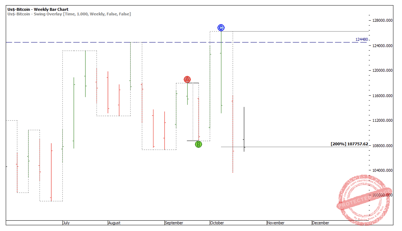 One that comes to mind is Bitcoin. Love it or hate it, there are trading opportunities on this market as it can so often be a strongly trending market. The setup I see at the moment is a false break double top followed by an Overbalance in Price on the weekly swing chart.