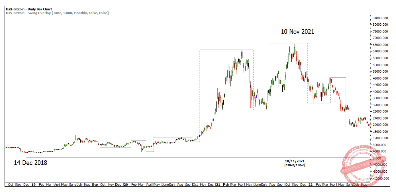 Interestingly enough, the major bull market range from 14 December 2018 to 10 November 2021 was 1062 days, just 12 days more.