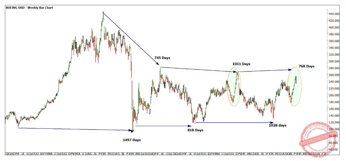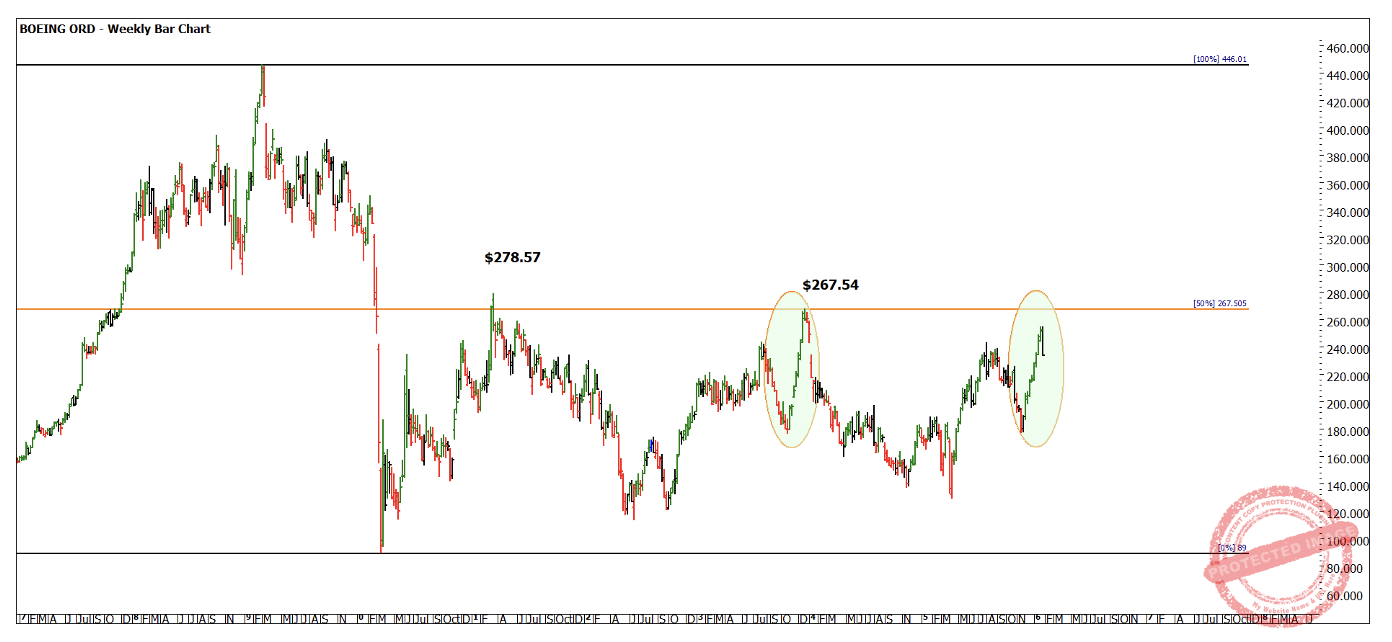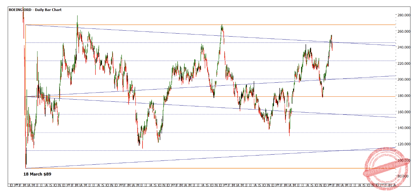 Our job is not to determine how the large blocks of capital are moved around asset classes but to identify the opportunities and be nimble enough to exploit them. I continue to focus my attention on the stock Boeing as it moves sharply to the upside. We have seen in the last week the first movement against the trend of 3 or more days. How we interpret this and what’s next is the question before us.