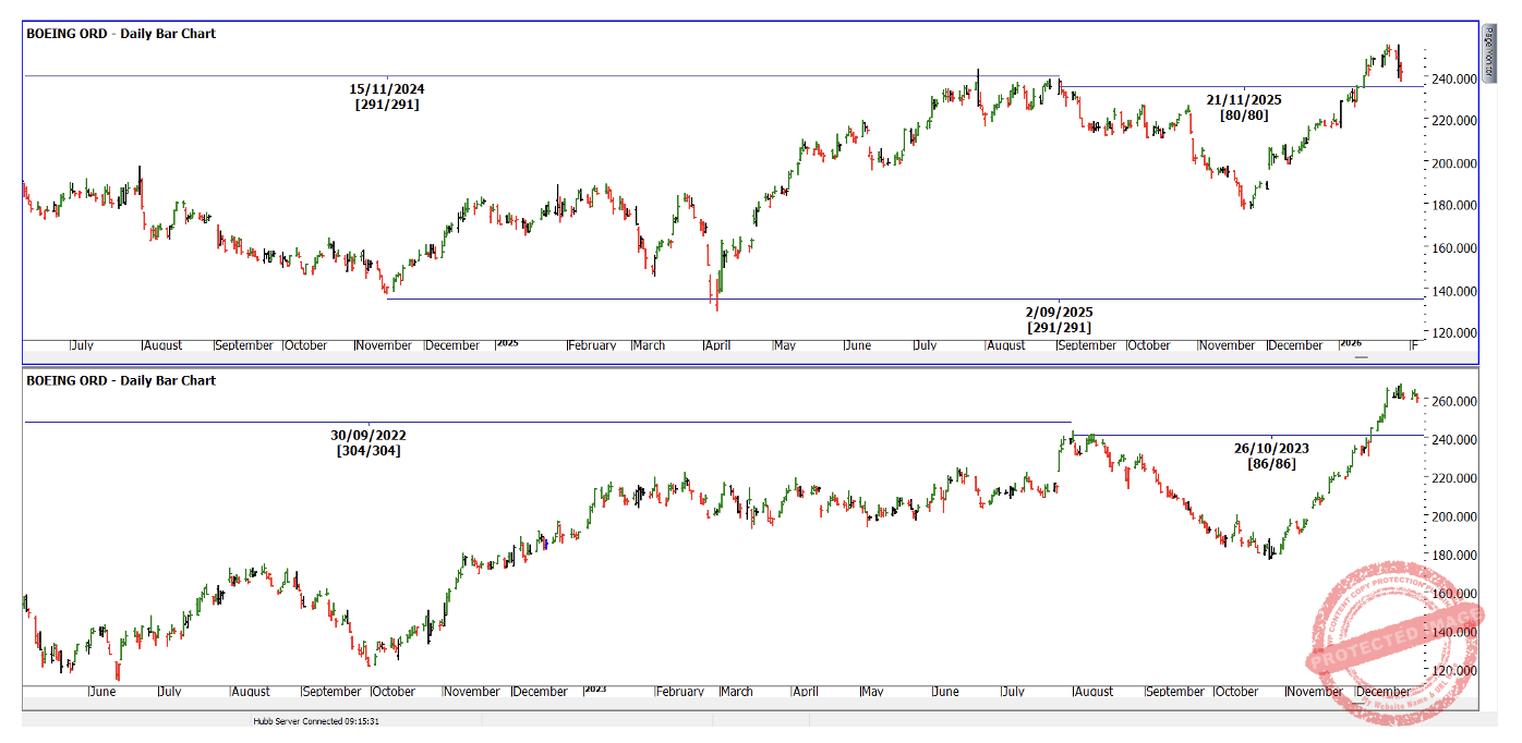 When looking at the patterns a market can provide, it may be worthwhile studying the bullish runs circled on the Chart 1. I have included Chart 2 as an insight into how markets can ebb and flow in similar ways to previous sections of the market, simply history repeats.