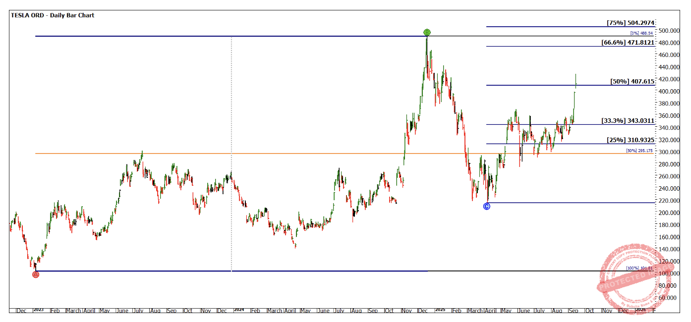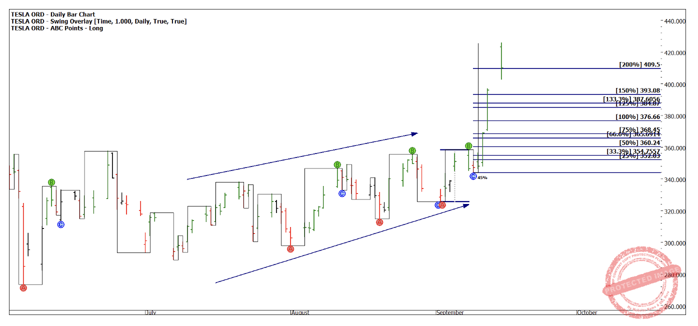 After such an explosive move we now have the volatility component for the requirements of a Classic Gann Setup. There may yet be more movement to come in Tesla.
