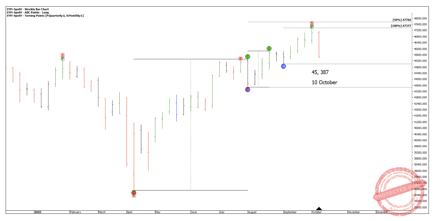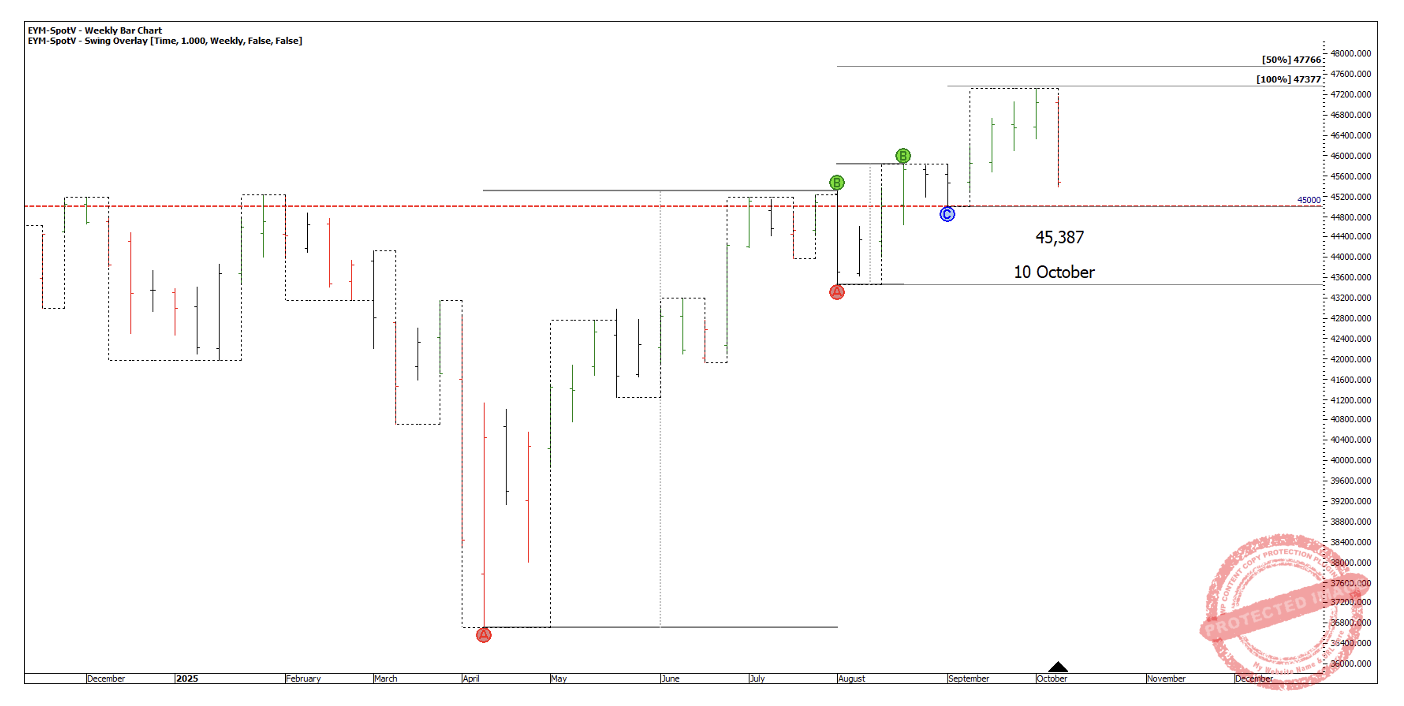 The market then pushed higher and just failed to hit the cluster I had identified then put in a strong week down into a 10 October low of 45,387.