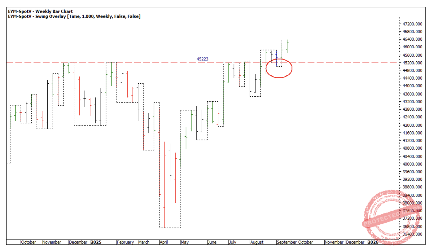 Looking at the Mini Dow Jones EYM-SpotV, this market has pushed through four previous swing highs to now find a higher bottom on these levels. This would indicate to me a significant sign of strength.
